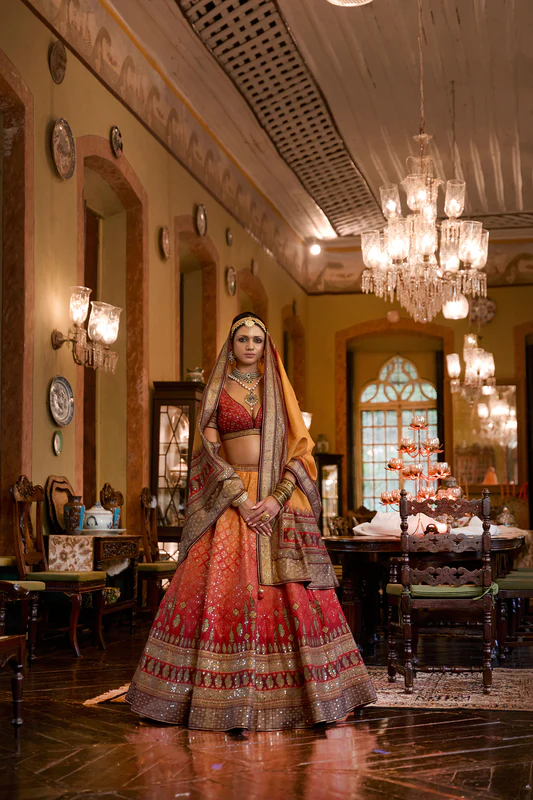 | Work/Embellishments | Kundan Stones, White Pearls, Artificial Flowers, Gold Lace |